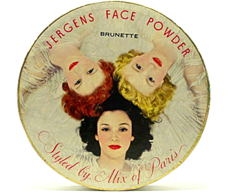 Remember when Jergens made makeup? (Neither do we.) Launched in the early 1940s, this Art Deco face powder was part of a cosmetics campaign featuring the Vargas Girls, an illustration of pin-up girls by Alberto Vargas. Each product came with a paper insert with the slogan, "The Newest in Complexion Loveliness," as well as a chart to match your shade -- Naturelle, Brunette, Rachel, or Dark Rachel. The words, "Styled by Alix of Paris" were scripted across the lid as a nod to French fashion designer Madame Alix Grès. Tres chic, non?