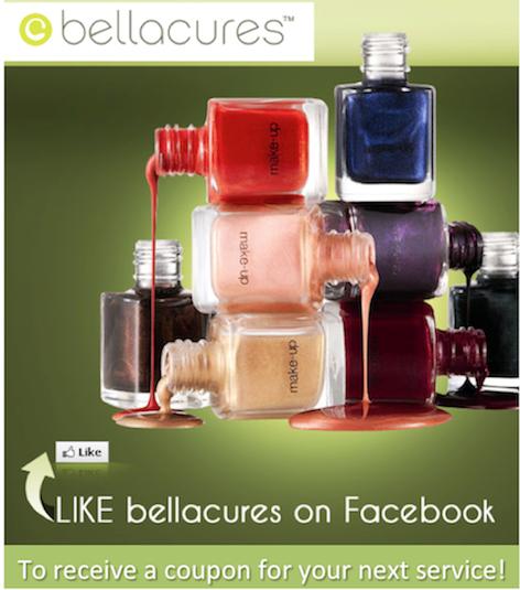 Hello everybody! Bellacures Nail Salon is offering a $15 coupon for liking them on Facebook. Check it out here: https://www.facebook.com/Bellacures?sk=app_174961479209942
