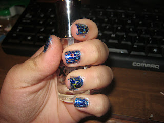 Then, I had a genius idea to apply my Sephora by OPI Blasted Nail Color in Indigo on top which is like a crackle polish. I have to say, I LOVE the way this turned out,