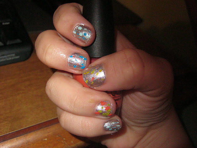 After painting my nails with Celeb City, I just make tiny dots in all different colors on each nail. I used the following polishes.