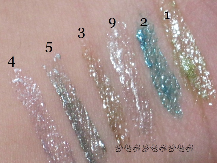 The swatches are all on completely bare skin, no type of eyeshadow or primer underneath at all. I choose this swatch picture to show you, since you can really see the beautiful sparkle.