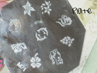 This set includes a scraper, a stamper, and one nail plate. You get everything you need for stamping except a stamping polish. That's why I got the special black stamping polish. I've heard that you can use any polish to stamp with, but the ones made for stamping are a lot better.
