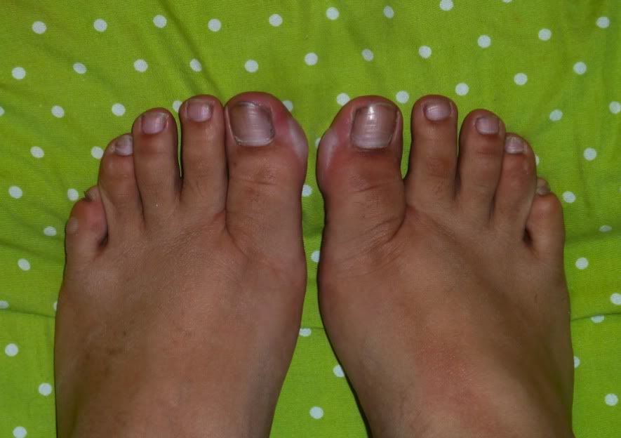 So I need a manicure desperately. I wanted to wait a few days until I did that before taking the picture. My shoes tore up my feet. :-( So PLEASE, ignore my swollen and blister-covered feet. I know they're disgusting, but I wanted to make sure I remembered to get this picture up in time. :-/